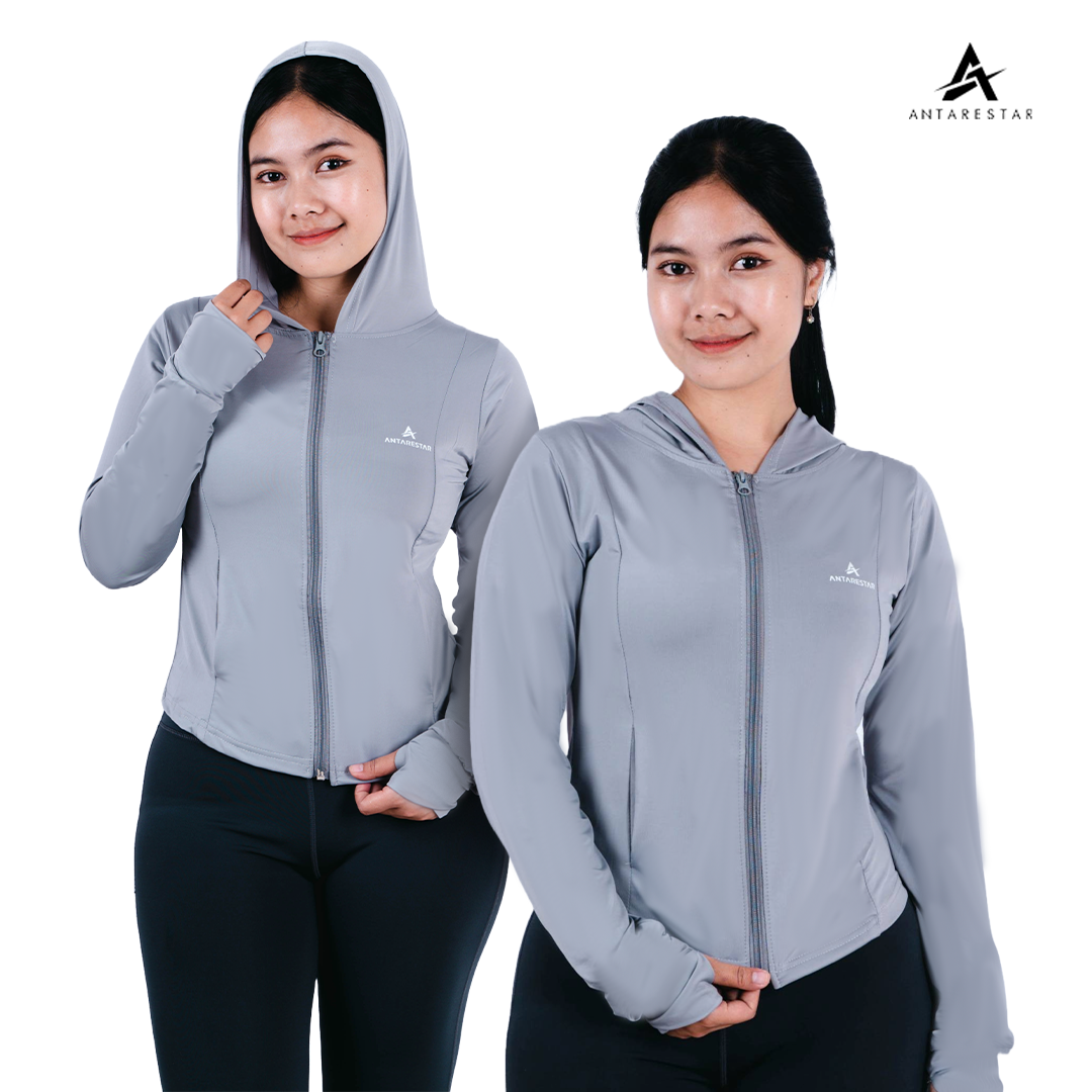 – Lengan Panjang + Hoodie: Lindungi tubuh lebih luas dari paparan sinar matahari.