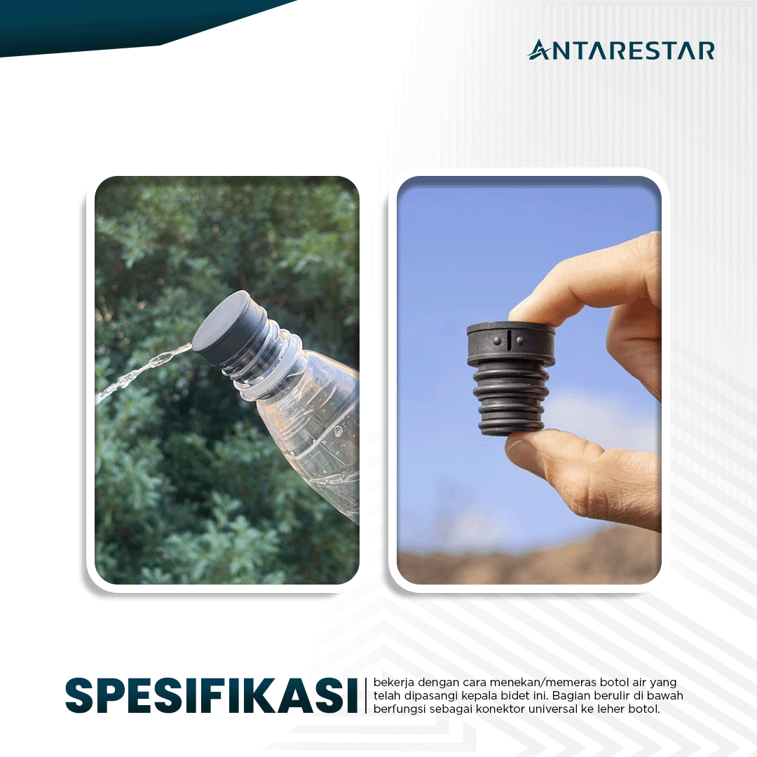 Portable Bidet ini adalah alat semprot portabel yang dapat dipasang ke berbagai jenis botol minum standar. Terbuat dari material plastik yang ringan, kuat, dan BPA-free, alat ini dirancang untuk memberikan solusi kebersihan pribadi yang lebih higienis dan ramah lingkungan, baik di rumah maupun saat bepergian.