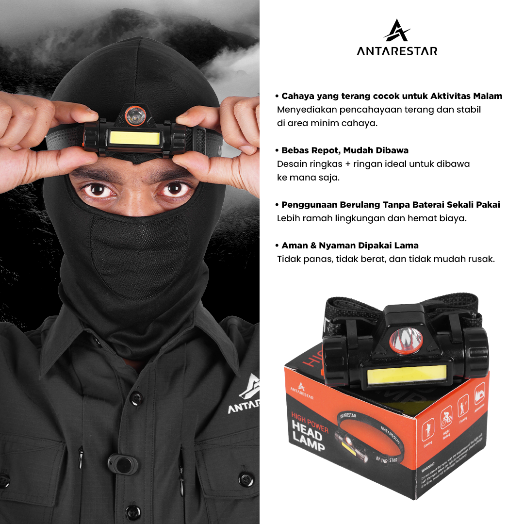 Headlamp Mini LED COB dari Antarestar hadir sebagai solusi praktis untuk berbagai aktivitas outdoor dan situasi darurat.